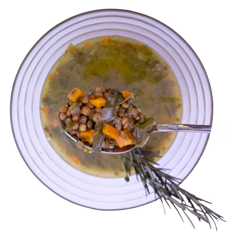 Brown lentils simmered with Swiss chard, carrots, coriander (fresh and dried), garlic, cumin, and a lemony kick. Nourishing, bold, and vegan-friendly. 135Kcal • C20g • P7g • F5g