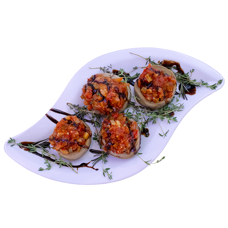 Whole artichoke hearts filled with ratatouille-style veggies, onions, garlic, and tomatoes. A Mediterranean dish with real soul. 113Kcal • C15g • P2g • F5g